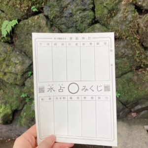 水占みくじが本宮にあり、御神水に白いおみくじを浸すと文字が浮かび上がるという、貴船神社ならではのおみくじがありました。早速おみくじを引いてみます。
